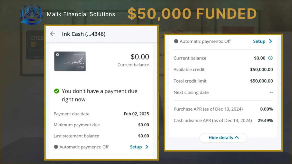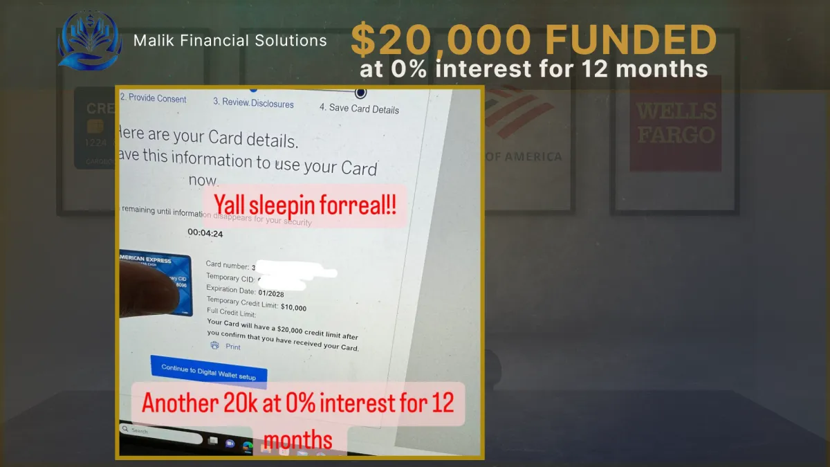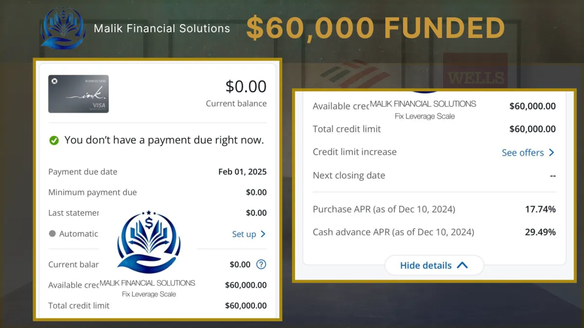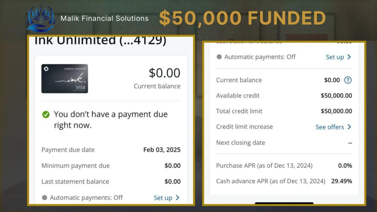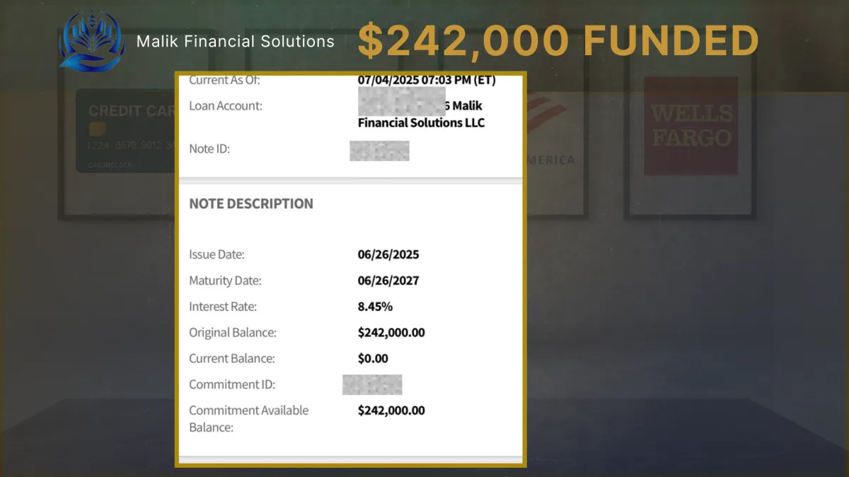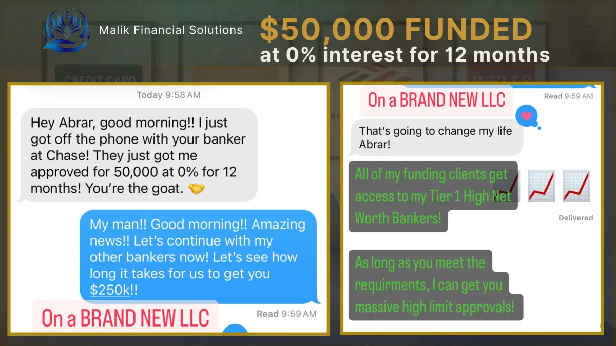 From Denied Loans to Approved! “Securing funding felt overwhelming until I worked with Malik Financial Solution. They helped me get approved for a $250,000 line of credit and a $20,000 business credit card. The process was straightforward, and their guidance made everything stress-free. This funding is already helping me scale my business faster than I imagined.”